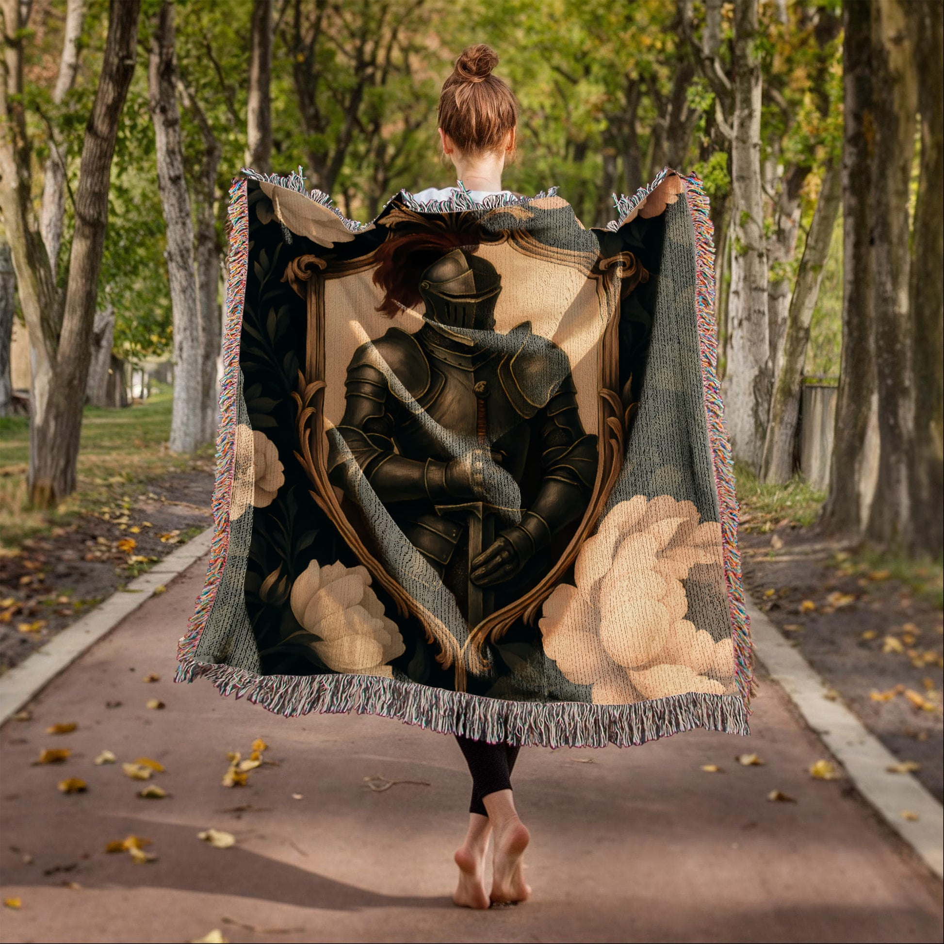100% Cotton Woven Blanket – Medieval Knight with Sword Inside Shield Frame