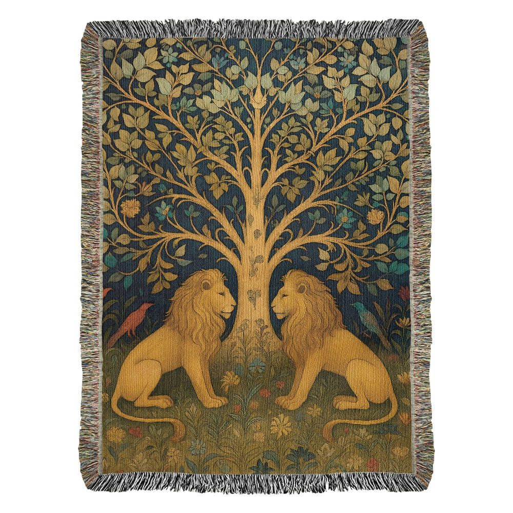 100% Cotton Woven Blanket – Majestic Lions under Forest Tree Gazing at One Another